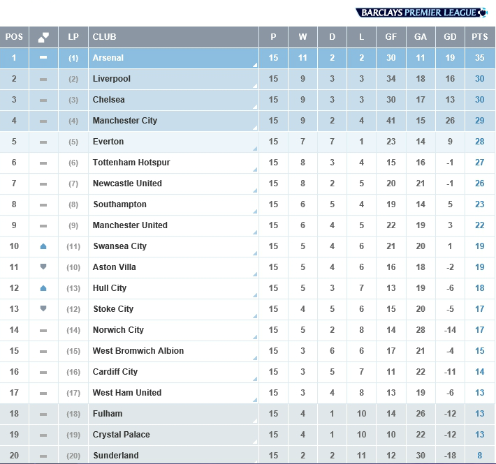 BARCLAY PREMIER LEAGUE RANKING AS AT 9TH DECEMBER [PHOTO] are you are fan of the Barclays Premier League? and wanna know the current club rankings? check the picture below....... comments are highly welcomed in the comment box